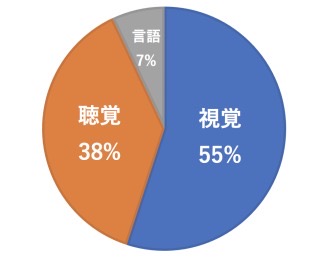 「言語」「聴覚」「視覚」の3つの情報から構成され、それぞれの情報の影響力は以下の割合になるというものです。
