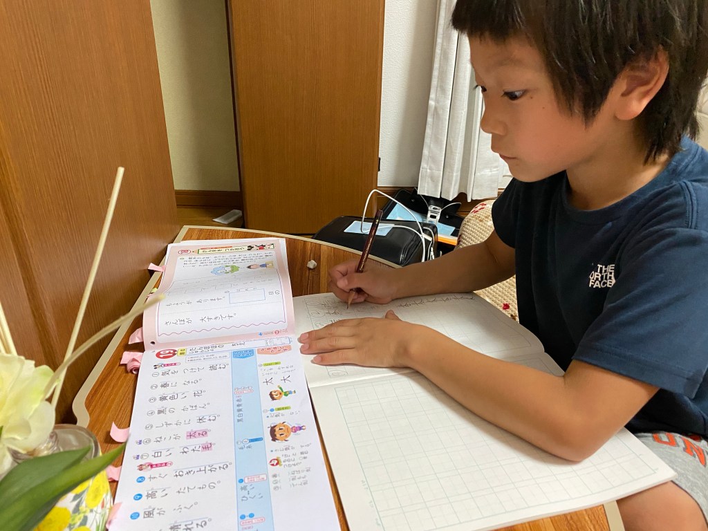 隣でブログを書きながら、息子の宿題を見届けて幸せなひと時です。